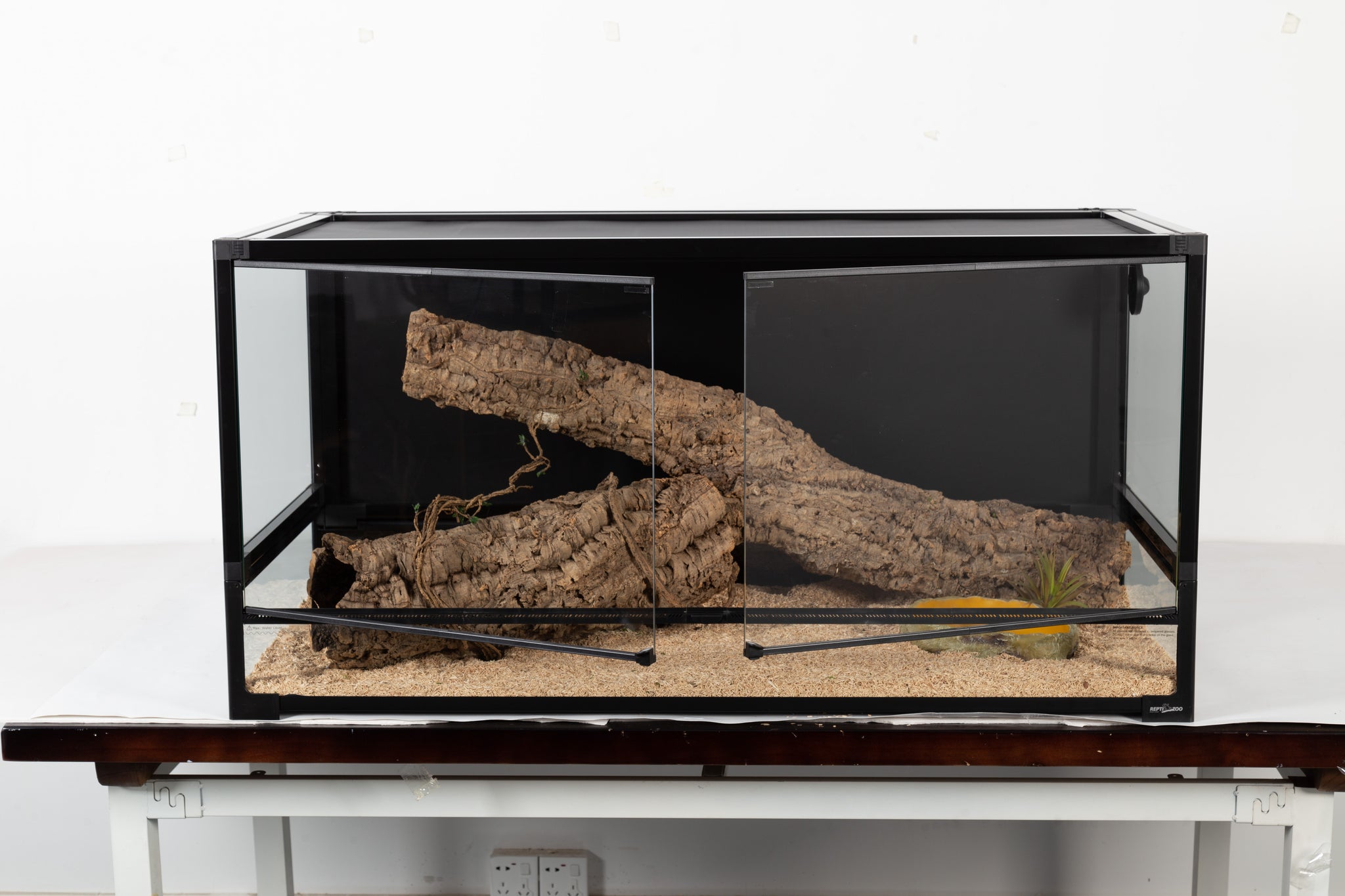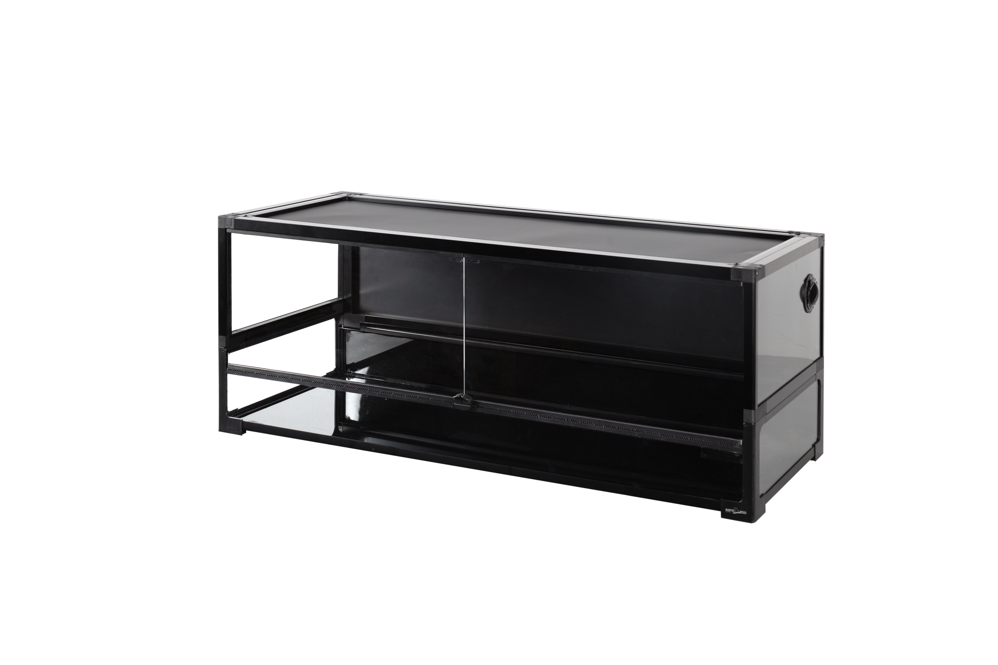 Functionality is key: an integrated cable pass system is designed for neat management of power cords or airline tubing, keeping your setup organized and aesthetically pleasing. Maintenance and daily interaction are effortless thanks to detachable front doors that allow for thorough cleaning, and a convenient one-hand opening door handle for smooth, quick access. Built for versatility, a water-tight base makes it perfectly available for amphibian and aquatic environments. An added raised bottom frame facilitates the mounting of a substrate heater or heat cable, enabling you to create optimal hot and cold zones with ease. For terrariums with a length ≥60cm (23.6''), a black PVC panel is strategically integrated to reduce overall weight and enhance safety.