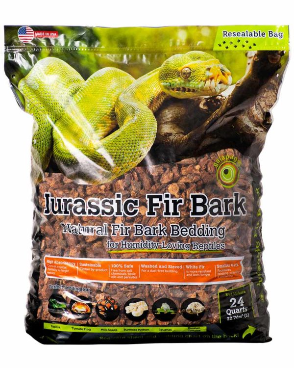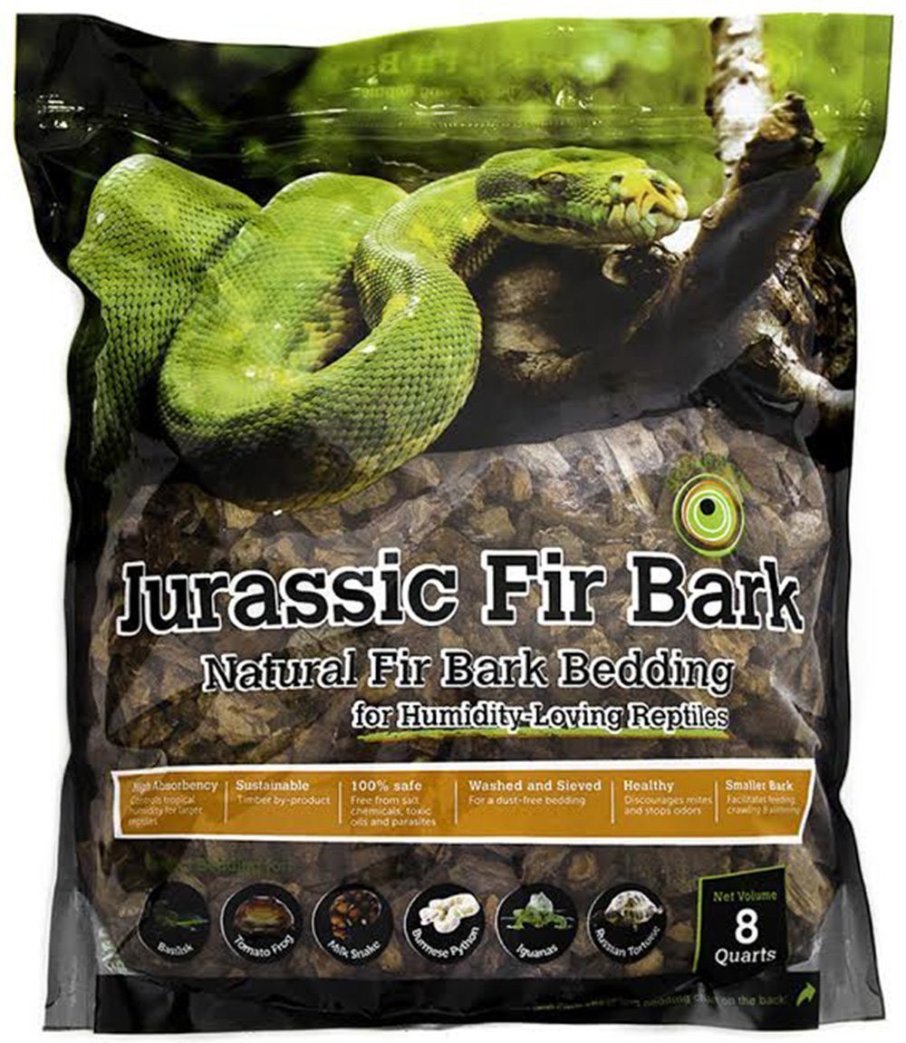Galapagos' Jurassic Fir Bark is for humidity-loving reptiles. Our bedding is made from 100% Douglas Fir bark. We have selected a small bark size that feels nice when your pet is feeding, crawling or slithering.
